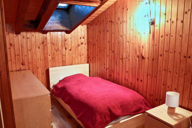Im Obergeschoss befinden sich die Schlafräume. Es gibt 4 Schlafzimmer. Zwei von ihnen haben ein Doppelbett. Die anderen beiden haben zwei Einzelbetten. Es ist auch möglich, zwei Einzelbetten in einem der Schlafzimmer zu einem großen Doppelbett zu stellen.