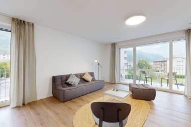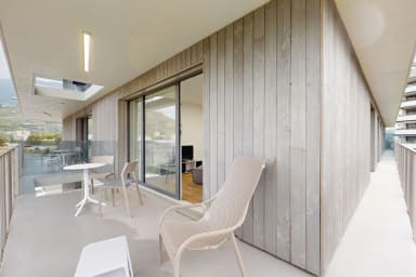 - Ein möblierter Balkon, der sich perfekt für einen Drink eignet, während Sie die Aussicht auf die Umgebung von Sion geniessen.