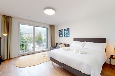 Verbringen Sie einen komfortablen Aufenthalt in diesem geräumigen, komplett möblierten und ausgestatteten Studio in einer ruhigen Gegend von Sion - in der Nähe aller Annehmlichkeiten