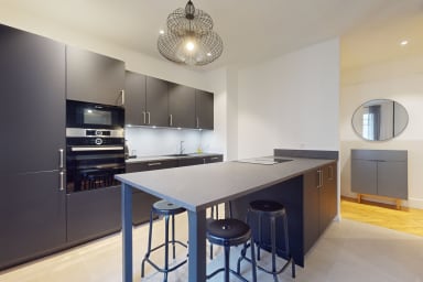 - Eine moderne, voll ausgestattete Küche mit einer geräumigen zentralen Kochinsel und einem Essbereich. Sie verfügt über Kochplatten, einen Kühlschrank, einen Gefrierschrank, einen Geschirrspüler, einen Backofen und eine Kaffeemaschine (kompatibel mit Nespresso-Kapseln), um Ihnen einen guten Start in den Tag zu ermöglichen.