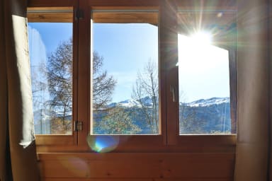 Typical wooden chalet, in a quiet environment and close to the ski area of Saint-Luc/Chandolin. Splendid sunny terrace and view!