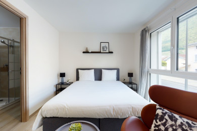 This apartment is part of the Nonanteneuf chain, the first appart-hotel chain in French-speaking Switzerland. With the aim of popularizing this type of establishment in Switzerland, Nonanteneuf has integrated technological innovation into its hotel management, and is committed to meeting the high quality standards of the Swiss hotel industry. Nonanteneuf offers urban, flexible and affordable accommodation to make your stay enjoyable, regardless of its duration!