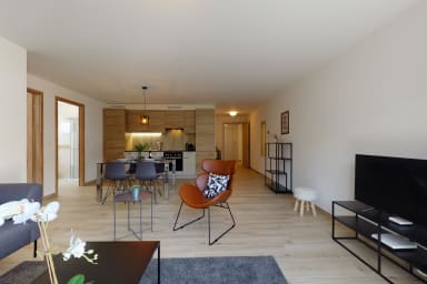 Suite moderne et lumineuse dans la résidence Nonanteneuf à deux pas de la gare d’Aigle – point de départ idéal pour vos excursions dans la région du lac Léman et du Chablais.