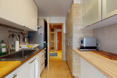 - Une cuisine fermée et bien équipée, comprenant notamment une machine à café, un four ainsi qu’un lave-vaisselle.