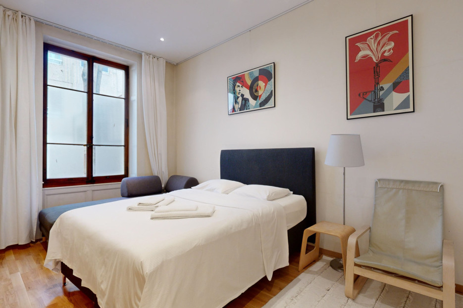 L'appartement se trouve en plein coeur de la ville de Genève, à proximité des Bains des Pâquis, du pont du Mont-Blanc et de la gare.